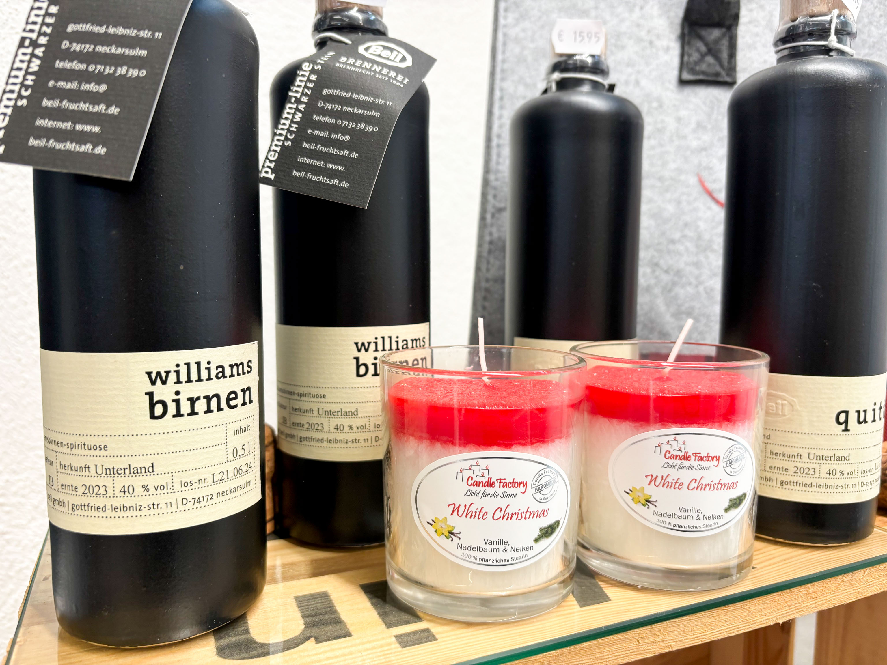 Unser Gesamtsortiment beinhaltet neben Säften auch das klassische Getränkemarkt-Sortiment, hochwertige Weine sowie selbstgebrannte Destillate.
